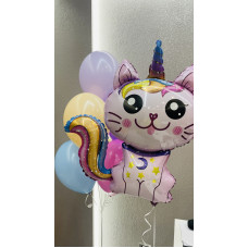 В набор входит:1 фигура кошки (есть в розовых и голубых оттенках)7 латексных воздушных шаров в нежной цветовой гамме макарунсКомпозицию можно дополнить латексными или фольгированными воздушными шарами, цифрой, а так же, нанести ваши индивидуальные на..