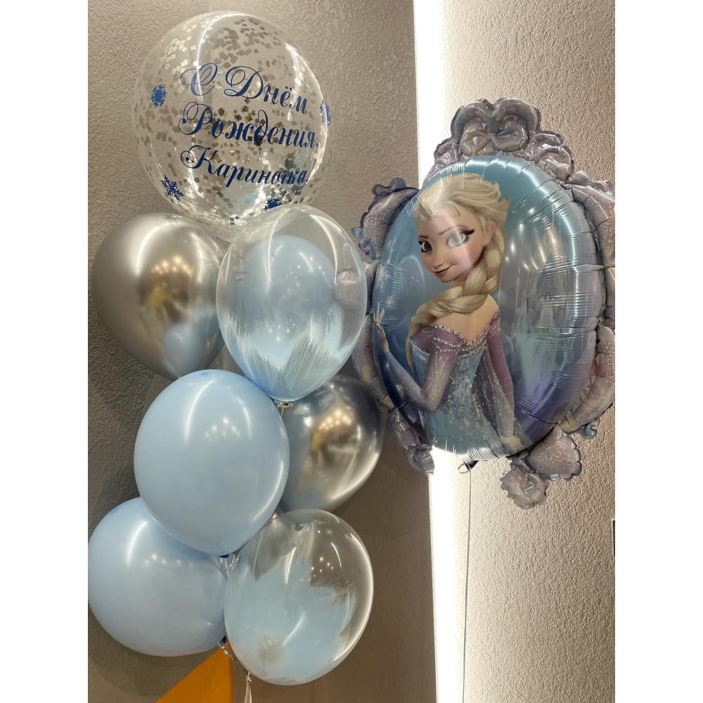 1 фольгированный двухсторонний шар-зеркало. с одной стороны Анна, с другой Эльза.