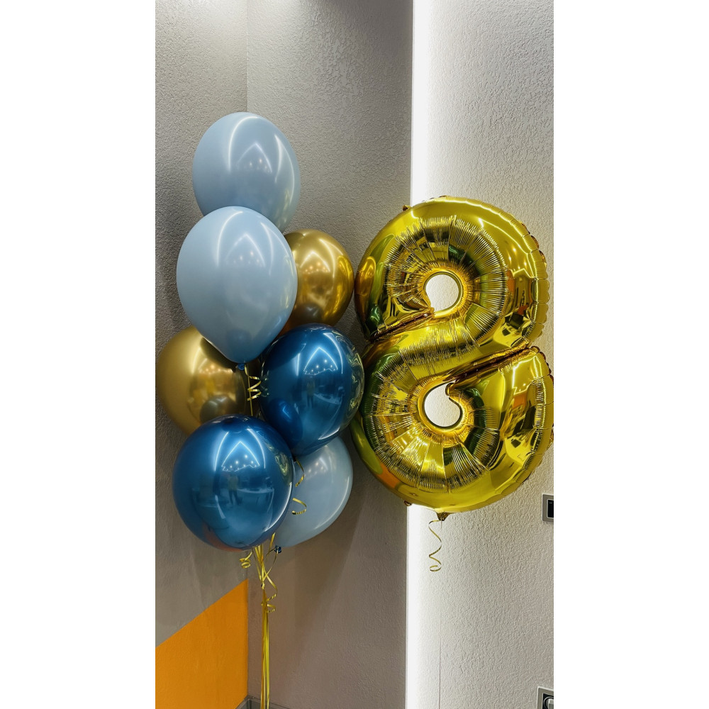 7 латексных воздушных шаров, из которых: 2 хрома, 5 латексных воздушных шаров даблстаф наполненных гелием.