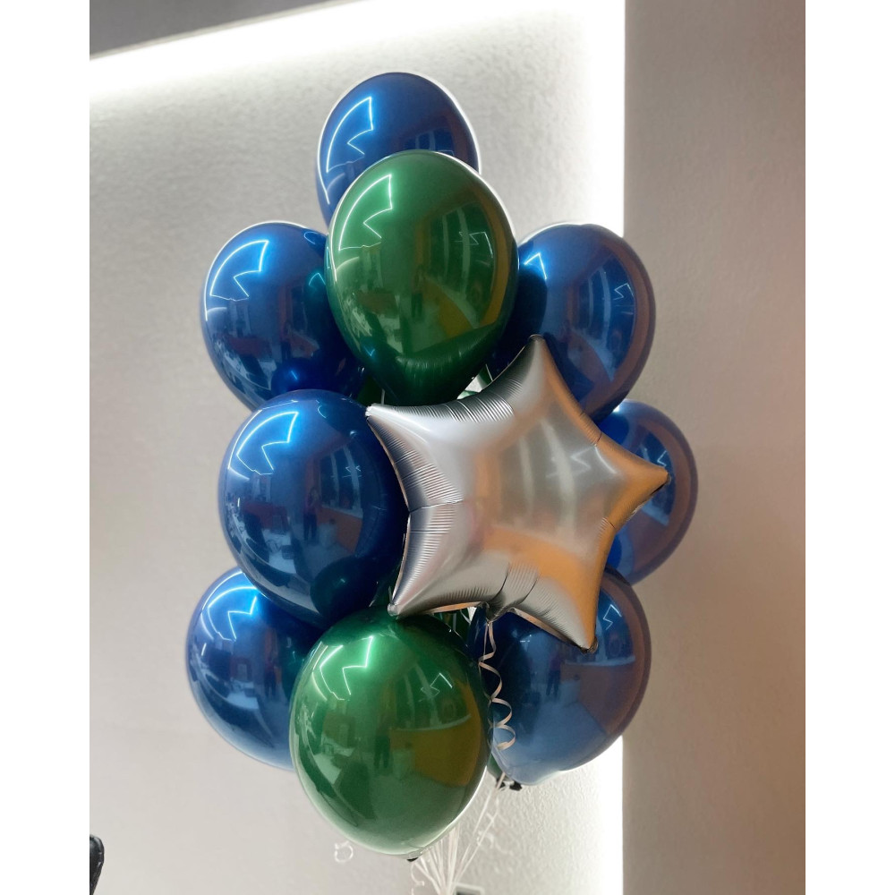 14 латексных воздушных шаров в технике даблстаф: темно синего и темно зеленого цвета.