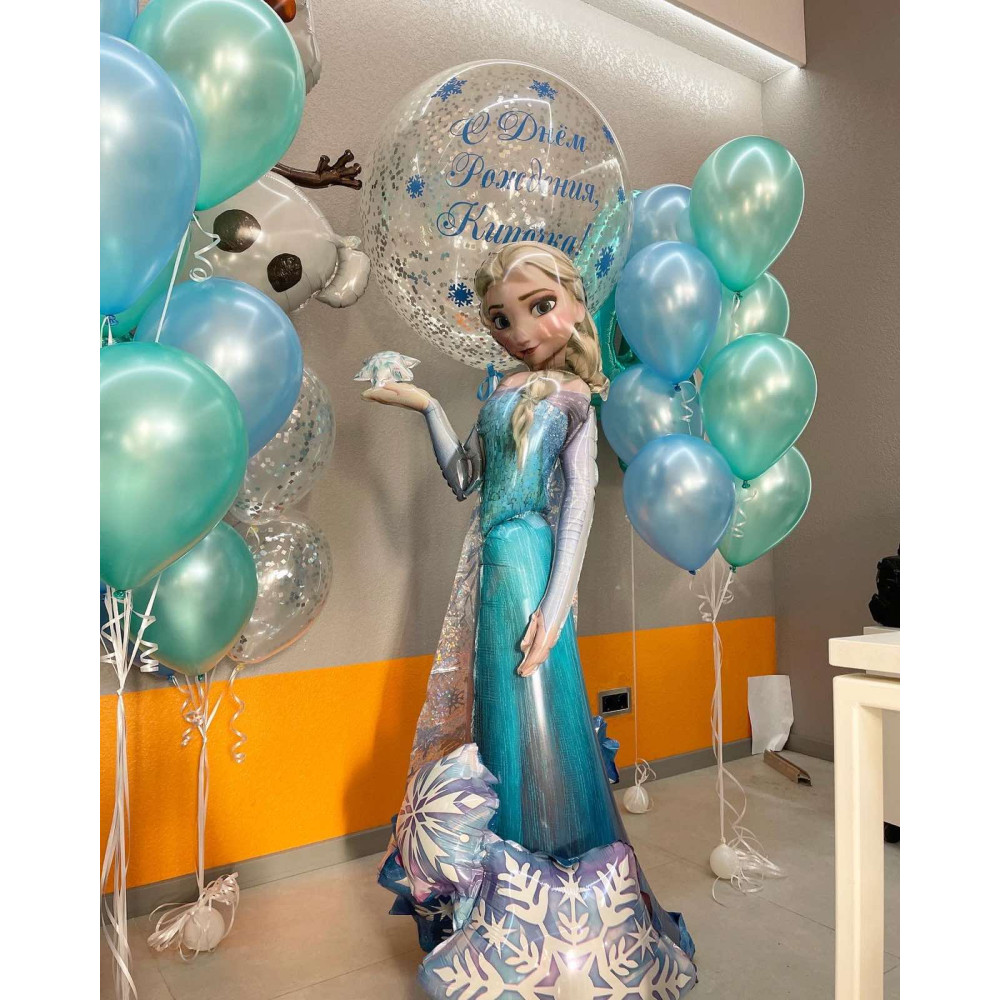 Большой фольгированный шар-ходячка в форме диснеевской принцессы Эльзы из мультфильма "Frozen" (Холодное сердце). (С гелием)